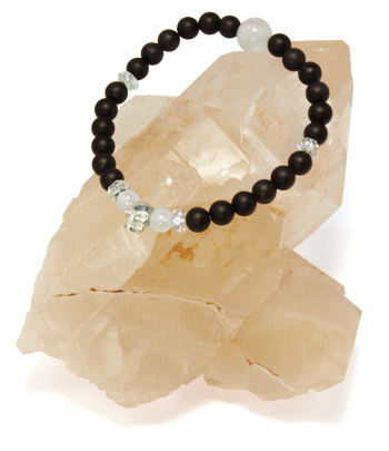 ムーンストーン10mm・6mm玉使用、フロストオニキス6mm玉、カット水晶、スカルシルバー925使用