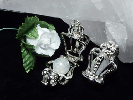 NEW ご注文番号 290 クラウン型ペンダントトップ 約0.8×1.3×1.3cm シルバー925金具使用 5,000円(+消費税) クラウン型の開閉ができるペンダントトップです。約7mmまでの丸玉が入ります。 こちらには、7mmのハイグレードのレインボームーンストーンをお付けしてのお届けとなります。 ※画像にマウスをあてますと、大きなサイズで商品をご覧いただけます。 |