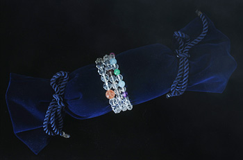 水晶に繋ぎそれをブレスレットにする事で影響させる範囲を広げ、このブレスレットと触れ合う石やブレスレットの波長(特殊配列の場合はメロディー和音)を増幅させることができるのです。