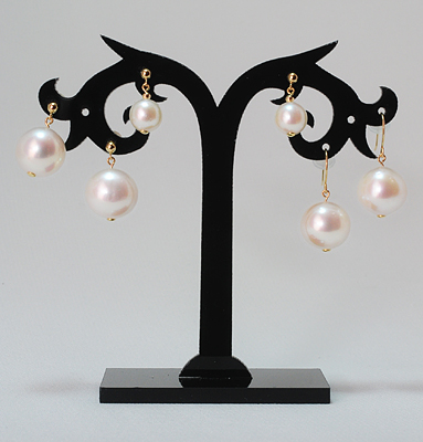 右-淡水パール、フックタイプピアス ご注文番号 416 8,000円 (+消費税) 中央-あこやパール、ピアス 参考商品 16,000円 (+消費税) 左-淡水パール、ピンタイプピアス ご注文番号 417 10,000円 (+消費税) ※画像にマウスをあてますと、大きなサイズで商品をご覧いただけます。 |