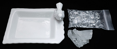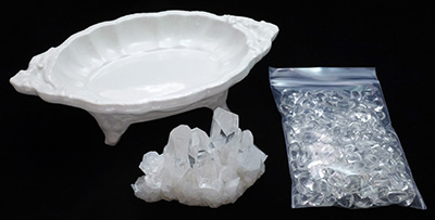 セット内容は、アーカンソー水晶クラスター(60g以上)1点と 上質さざれ水晶(ブラジル産)100g そしてプレゼントとして 小鳥のトレーをお付けしてお届け致します。