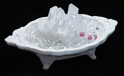 大きなクラスターを使ってアイテムを浄化するには、直接結晶のポイント部分に乗せておくだけで浄化(クリーンにする、休ませる、パワーチャージになる)ができます。