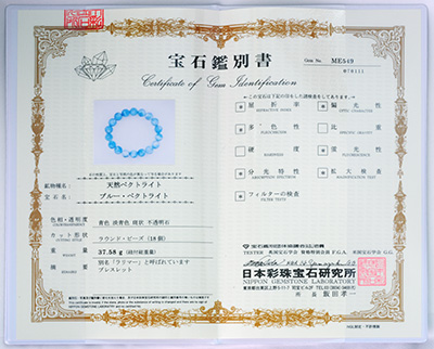※ラリマーは、画像の鑑別書に写っている現物のブレスレットの中から 良い玉のみをお選びし組み入れてお届け致します。
