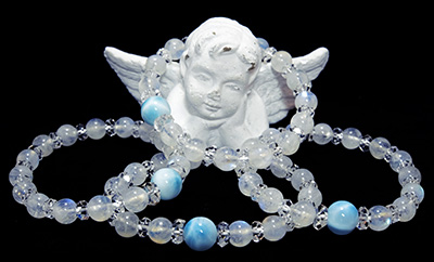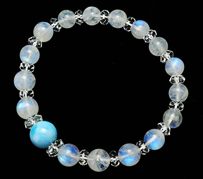 ○ブレスレット(2種類) ・ラリマーとホワイトラブラドライト (特別浄化セット付き) ※画像にマウスをあてますと、大きなサイズで商品をご覧いただけます。 |