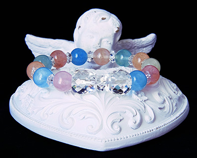 透明先生にリーディングしていただいたところ このブレスレットのラリマーとホワイトラブラドライトの組み合わせは ビューティーに関する事を引き上げる力もある とお教えくださいました。