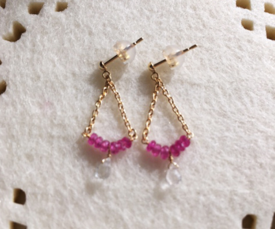 【K18 ルビーとクリアーサファイアのピアス】(ペア1組) ご注文番号 511 ※画像にマウスをあてますと、大きなサイズで商品をご覧いただけます。 ◎[K18イヤリングパーツへ変更可能アイテムです] ・イヤリングパーツ(K18イエローゴールド)への変更は、プラス¥6000(+消費税)で承ります。 ご注文フォーム備考欄に「イヤリングパーツへ変更希望」とご記入くださいませ。 ・K18イエローゴールド ピンポストピアス(K18シリコンカバー付きキャッチ) ・ルビーボタンカット 12石 (約2㎜×1㎜) ・クリアーサファイアブリオレットカット 2石 (約4㎜×3㎜) ・K18イエローゴールドチェーン、マルカン、金線使用 ・チャームの全長 約2、2㎝ ☆鮮やかで可愛らしい赤いルビーと クリアーなブリオレットカットのサファイアが耳元で揺れるピアスです。 ★{ルビー}★ 強力な邪気、邪念、悪霊を祓い 栄光をもたらすと言われています。 また、情熱を高めたり 愛を満たす意味を持っています。 [外から引き寄せる運] ・最愛運…周りを分け隔て無く大切にする心。慈愛、博愛を持ち人気や憧れを得る運 ・夫婦運…夫婦が尊敬し合い、結び付きを強く持てる。子宝を得ることができる運 ・光康運…骨や肉の病気をしにくくなる運。骨や肉を強くする運 |