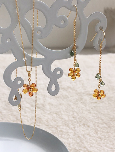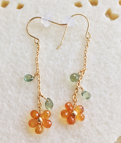 【K18 サファイアお花のピアス】(ペア1組) ご注文番号 515 23,000円 (+消費税) ※画像にマウスをあてますと、大きなサイズで商品をご覧いただけます。 ◎[K18イヤリングパーツへ変更可能アイテムです]・イヤリングパーツ(K18イエローゴールド)への変更は、プラス¥8000(+消費税)で承ります。 ご注文フォーム備考欄に「イヤリングパーツへ変更希望」とご記入くださいませ。 ・K18イエローゴールド フックタイプピアス(シリコンキャッチ付き) ・オレンジサファイアブリオレットカット 10石(約3㎜×2㎜) ・グリーンサファイアブリオレットカット 4石(約3㎜×2㎜) ・K18イエローゴールドミラーボール 2個(2㎜) ・K18イエローゴールド チェーン、金線使用 ・トップチャームの全長 約3、3㎝ ☆ブリオレットカットのオレンジサファイア5石と 中央にK18イエローゴールドミラーボールでお花を型どり チェーンに2石のグリーンサファイアをつけて葉っぱのイメージになるよう配しました。 オレンジサファイアは、見ているだけでも そのカラーから元気をもらえます。 サファイアの持つ素晴らしい意味や 引き寄せる運にプラス、カラーからの作用の活力が加わり 身につけてくださる方の人生が花開くことを願って組み合わせたデザインです。 |