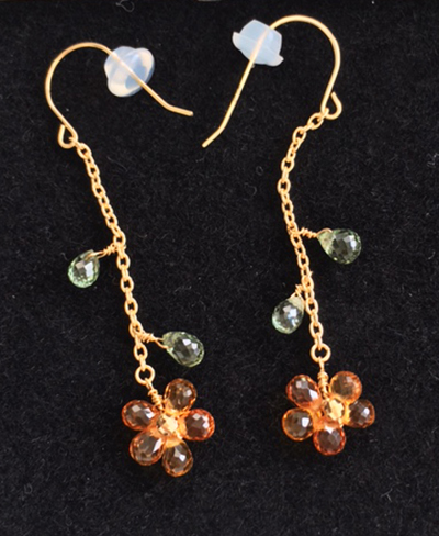 【K18 マルチカラーサファイアピアス】(ペア1組) ご注文番号 517 12,000円 (+消費税) ※画像にマウスをあてますと、大きなサイズで商品をご覧いただけます。 ◎[K18イヤリングパーツへ変更可能アイテムです]・イヤリングパーツ(K18イエローゴールド)への変更は、プラス¥8000(+消費税)で承ります。 ご注文フォーム備考欄に「イヤリングパーツへ変更希望」とご記入くださいませ。 ・K18イエローゴールド フックピアス(シリコンキャッチ付き) ・カラーサファイアブリオレットカット 10石 (4㎜×3㎜)(3㎜×2㎜) ・K18イエローゴールド チェーン、○カン、金線使用 ・トップチャームの全長 約3㎝ ☆サファイアのブリオレットを房状にして、チェーンの先端に配し 長さを出したデザインのピアスです。 ビタミンカラーのオレンジ イエロー グリーンの3色の組み合わせです。 一番簡単に脱着ができる フックタイプのピアスを使っています。 外れて無くすことの無いよう シリコンキャッチもお付け致します。 元気がわいてくるようなカラーのサファイアをお気軽にお楽しみくださいね! |