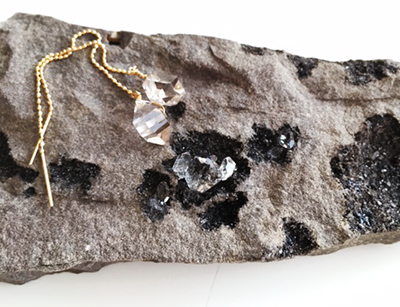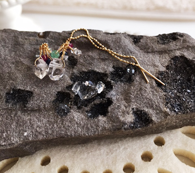 【K18 ハーキマーダイヤクォーツと3カラーストーンのアメリカンピアス】(ペア1組) ご注文番号 520 19,000円 (+消費税) ※画像にマウスをあてますと、大きなサイズで商品をご覧いただけます。 ◎[K18イヤリングパーツへ変更可能アイテムです]・イヤリングパーツ(K18イエローゴールド)への変更は、プラス¥3000(+消費税)で承ります。 ご注文フォーム備考欄に「イヤリングパーツへ変更希望」とご記入くださいませ。 ・K18イエローゴールド ボールチェーンアメリカンピアス チェーンの長さ 5㎝ ピン部分の長さ 1㎝ トップチャーム部分の長さ 1、5㎝ 全長約7、6㎝ ・ハーキマーダイヤクォーツ 2石(大約7㎜×6㎜)6石(小4㎜×3㎜) ・ルビーボタンカット 2石(約2~3㎜) ・サファイアボタンカット 2石(約2~3㎜) ・エメラルドボタンカット 2石(約2~3㎜) ・K18イエローゴールド マルカン、金線使用 トップチャーム部分 約1、5㎝ ☆ハーキマーダイヤクォーツをメインに、小さな粒のルビー、サファイア、エメラルド、小粒のハーキマーダイヤを散りばめた アメリカンタイプ(ボールチェーン)のピアスです。 アメリカンタイプですので お好みの長さにして着けてお楽しみいただけます。 ハーキマーダイヤは、「夢を叶えるドリームクリスタル」として有名ですね! [ハーキマーダイヤの持つ意味] 予見力を得られ 身心のバランスを整える。 意思力upや潜在能力upという 特にポテンシャルに響かせる意味を持っています。 外から引き寄せる運は、 ・仕産運…人にモノを任せられるようになる。有能な者から慕われる運 ・子孫運…血縁者を大切にする気持ちを得る運。大切な人と絆が強く結ばれる運 ※ルビー、サファイア、エメラルドは、上記にご紹介している商品の説明をご参照くださいね。 ハーキマーダイヤは、ダイヤと名前がついていますが、ダイヤモンドでは無く クリスタルクォーツ(水晶)です。 ハーキマーダイヤは、ニューヨーク州ハーキマー地区のみで採掘されたクォーツをハーキマーダイヤと言います。 全く無加工の状態でも強い光沢を放ち、両端がとがった形で(両剣やダブルターミネイテッドと呼ばれます)まるでダイヤモンドのように見えることから 俗称として「ハーキマーダイヤモンド」と呼ばれるようになりました。 同じクリスタル(水晶)でも普通の水晶よりも透明度が高く ダイヤモンドの八面体結晶と良く似ています。 原石で比較すると ダイヤモンドより綺麗なものもあります。 原石のままで通常の水晶(クリスタルクォーツ)より、高温(摂氏573度以上)、高圧の環境下で形成されるので、カーボンや気泡を内包する場合が多いのです。 大きくなるにつれクラックが増えます。(虹「レインボー」が現れることもあります) 黒い混入物(インクルージョン)は、カーボンです。[黒い小さな炭の粉が粒状に集まったもの] このカーボンが不純物を吸着する性質があるので ハーキマーダイヤの結晶が素晴らしく綺麗だとも言われています。 ハーキマーダイヤは、小さな粒で産出される事が多く、大きいものや 透明度の高いクリアーな単結晶は とても貴重なのです。 このハーキマーダイヤクォーツと 3カラーの宝石を贅沢に組み合わせました。 クリアーカラーのハーキマー達と 小粒の3カラーの宝石なので さりげなく素敵に身につけていただけるピアスだと思います。 |
