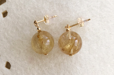 【K18 ルチルクォーツ ピアス】(ペア1組) ご注文番号 525 12,000円 (+消費税) ※画像にマウスをあてますと、大きなサイズで商品をご覧いただけます。 ◎[K18イヤリングパーツへ変更可能アイテムです]・イヤリングパーツ(K18イエローゴールド)への変更は、プラス¥6000(+消費税)で承ります。 ご注文フォーム備考欄に「イヤリングパーツへ変更希望」とご記入くださいませ。 ・K18イエローゴールド ピンポストタイプピアス(K18キャッチシリコンカバー付き) ・ルチルクォーツ 2石(10㎜) ・K18イエローゴールド ミラーボールビーズ 2粒(2㎜) ・K18イエローゴールドピン使用 ☆ルチルクォーツの丸玉を使ったシンプルなピアスです。 ルチルクォーツは、パワーストーンの中でも とても人気のあるストーンです。 常に多くのリクエストをいただいている石でもあります。 ルチルクォーツは、美しい金色の針を持ち クリアーな水晶やスモーキークォーツに包まれているものが上質とされ、高額で取り引きされています。 今では ルチルクォーツの産出も少なくなり 質の高い石に本当に出会えなくなりました。 価格も高騰していて 10㎜玉の美しいものでは 1粒が数万円の値段がつくものもあります。 この度は ルチルクォーツを皆様に気軽にご活用いただきたいと考え、シンプルなピアスにしています。 ルチル自体に美しさがあり まんべんなく力を放てる この10㎜玉の付いた K18ピアスは、とてもお買得なお値段設定です。 キラキラ輝くゴールドカラーの石を身につけて 更に光輝いてくださいませね。 |