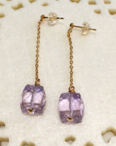 【K18 アメジストキューブカット ピアス】(ペア1組) ご注文番号 526 13,000円 (+消費税) ※画像にマウスをあてますと、大きなサイズで商品をご覧いただけます。 ◎[K18イヤリングパーツへ変更可能アイテムです]・イヤリングパーツ(K18イエローゴールド)への変更は、プラス¥6000(+消費税)で承ります。 ご注文フォーム備考欄に「イヤリングパーツへ変更希望」とご記入くださいませ。 ・K18イエローゴールド ピンポストタイプピアス(K18キャッチシリコンカバー付き) ・アメジストキューブカット 2石(約7㎜×7㎜) ・K18イエローゴールド ミラーボールビーズ 2粒(2㎜) ・K18イエローゴールドピン、チェーン使用 ・チャームの全長 約4㎝ ☆アメジストの中でも カラーが淡く美しい ラベンダーカラーのアメジストを使用しました。 キューブの形の全面に丁寧なジュエリーカットが施されています。 薄紫のクリアーなカラーは 季節やファッションを選ばずに いつでも素敵に活躍してくれるピアスです。 |