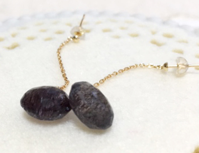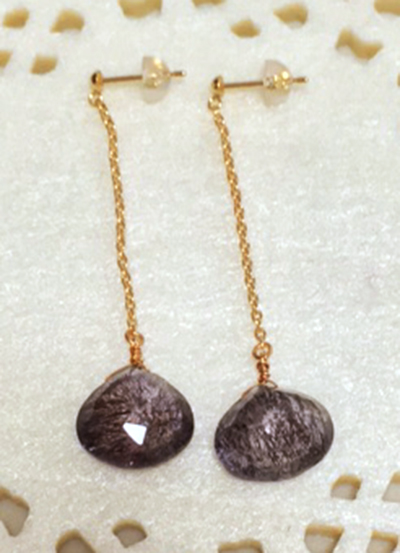 【K18 スーパーセブン マロンカットのピアス】(ペア1組) ご注文番号 527 ※画像にマウスをあてますと、大きなサイズで商品をご覧いただけます。 ◎[K18イヤリングパーツへ変更可能アイテムです]・イヤリングパーツ(K18イエローゴールド)への変更は、プラス¥6000(+消費税)で承ります。 ご注文フォーム備考欄に「イヤリングパーツへ変更希望」とご記入くださいませ。 ・K18イエローゴールド ピンポストタイプピアス(K18キャッチシリコンカバー付き) ・スーパーセブン(ブラジル エスピリットサント州産)マロンカット 2石(縦10㎜×横1、3㎝×厚み7㎜) ・K18イエローゴールド チェーン、金線、マルカン使用 ・チャームの全長 約4、5㎝ ☆ブラジルのエスピリットサント州産出のスーパーセブンを使用したピアスです。 マロンカットという 栗のようなシェイプで 全面に輝きが見えるようにカットを施したスーパーセブンです。 スーパーセブンの中のゲーサイトが多く含まれる部分を選んでルースにしています。 角度を変えて見ると シルバーブルーに美しく輝く姿が見られます。 ゲーサイトの他にも 全体を包むベースにはアメジストががった紫色の部分や インクルージョンには カコクセナイトやレピドクロサイトも少量見られます。 ゲーサイトが多く含まれる石は特に 創造性や自信をもたらしてくれると言われています。 自ら新しいエネルギーを作り出しているストーンでもあるので いつも新鮮な力を得られるのではないかと思います。 スーパーセブンの美しい石は とても高額でありますが、この度使用しているルースの片方の石の底に へこみ部分があるため とてもお安くご紹介しております。 この「へこみ」によってスーパーセブンの力に支障をきたすことはありません。 どうかご安心してご活用くださいませね。 大きめなスーパーセブンが耳元にあることで 新しい考え方やアイデアが沸いてくるのではないでしょうか。 迫力のある針がいっぱい詰まった素晴らしいスーパーセブンを どうぞ近くで楽しまれてくださいね。 |