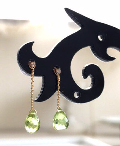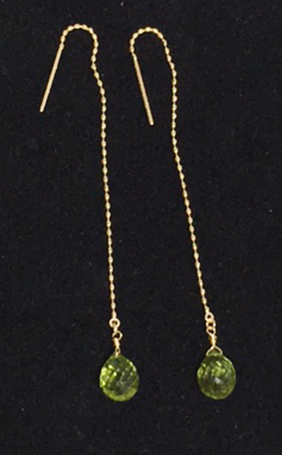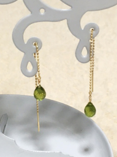 【K18 ペリドット アメリカンピアス】(ペア1組) ご注文番号 529 11,000円 (+消費税) ※画像にマウスをあてますと、大きなサイズで商品をご覧いただけます。 ◎[K18イヤリングパーツへ変更可能アイテムです]・イヤリングパーツ(K18イエローゴールド)への変更は、プラス¥3000(+消費税)で承ります。 ご注文フォーム備考欄に「イヤリングパーツへ変更希望」とご記入くださいませ。 ・K18イエローゴールド ボールチェーン アメリカンピアス ・ペリドットブリオレットカット 2石(7㎜×5㎜) ・K18イエローゴールド 金線、○カン使用 ・チェーンの長さ 5㎝ ・ピンの長さ 1㎝ ・チャームの長さ 1㎝ ・全長 約7、2㎝ ☆ペリドットのブリオレットカットを使用した シンプルなアメリカンタイプのピアスです。 若葉のような美しく輝くペリドットです。 ルースの大きさは、縦が約7㎜ 横幅は約5㎜と ほどよい存在感があります。 |