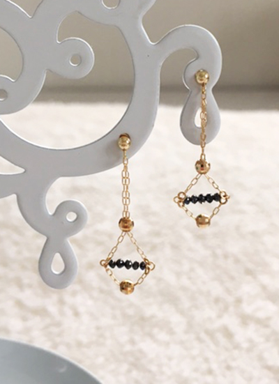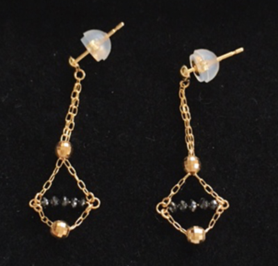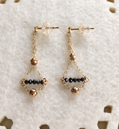【K18 ブラックダイヤモンドのピアス】(ペア1組) ご注文番号 530 13,000円 (+消費税) ※画像にマウスをあてますと、大きなサイズで商品をご覧いただけます。 ◎[K18イヤリングパーツへ変更可能アイテムです]・イヤリングパーツ(K18イエローゴールド)への変更は、プラス¥6000(+消費税)で承ります。 ご注文フォーム備考欄に「イヤリングパーツへ変更希望」とご記入くださいませ。 ・K18イエローゴールド ピンポストタイプピアス(K18キャッチシリコンカバー付き) ・ブラックダイヤモンドボタンカット 10石(1、2㎜×1㎜) ・K18イエローゴールド ミラーボールビーズ 4粒(3㎜) ・K18イエローゴールド チェーン ピン使用 ・チャームの長さ 約2、2㎝ ※ブラックダイヤモンドは、色調安定目的の放射線処理が施されたルースを使用しています。 ☆ブラックダイヤモンドを使ったピアスのご紹介です。 小さな粒のブラックダイヤモンドを5石ずつ 計10石使用しております。 小さな粒ですが、丁寧に研磨され カット面が輝いています。 ブラックカラーの主張が強くならないように ゴールドチェーンやミラーボールビーズと合わせてみました。 ブラックダイヤモンドの上下のミラーボールパーツは、チェーンに通してあるお作りなので、動きによって位置が変わり 全体の菱形のかたちの変化も楽しんでいただけますよ。 さすがダイヤモンドは 小さくても他には無い輝きを放っています。 |
