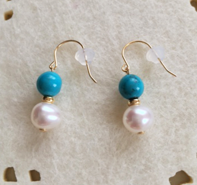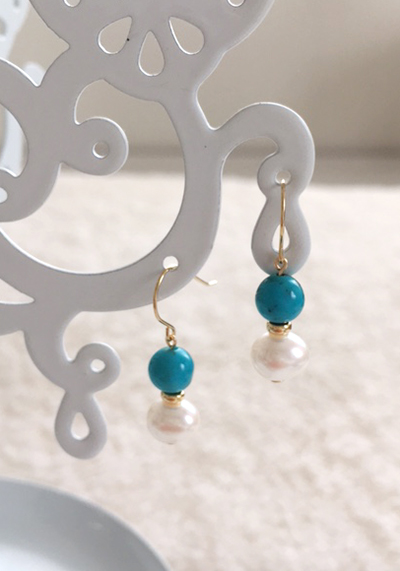 【K18 ターコイズと淡水パールのピアス】(ペア1組) ご注文番号 531 8,500円 (+消費税) ※画像にマウスをあてますと、大きなサイズで商品をご覧いただけます。 ◎[K18イヤリングパーツへ変更可能アイテムです]・イヤリングパーツ(K18イエローゴールド)への変更は、プラス¥8000(+消費税)で承ります。 ご注文フォーム備考欄に「イヤリングパーツへ変更希望」とご記入くださいませ。 ・K18イエローゴールド フックピアス(シリコンキャッチ付き) ・淡水パール 2粒(約6㎜×7㎜) ・ターコイズ 2石(約5㎜) ・K18イエローゴールド ドーナッツ形ビーズ 2粒(3㎜) ・K18ピン使用 ・トップチャームの全長 約1、5㎝ ※ターコイズは、品質保護目的のスタビュライズド加工が施されています。 ☆アリゾナ産のターコイズと 淡水パールの組み合わせのピアスです。 ホワイトとブルーとゴールドの色合いは、爽やかで清い印象を与えてくれます。 淡水パールは、無調色のナチュラルカラーで綺麗なパールらしい輝きがある玉を使用しています。 形は、タマゴのようなオーバルで タマゴを横に寝かせたような穴の空き方が可愛らしく、その上にK18のドーナツビーズと ターコイズが乗った配置になっています。 全体のモチーフが ひょうたんのようなフォルムです。 シンプルで高級感のあるチャームピアスです。 |