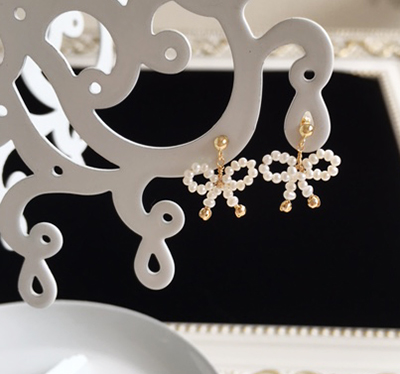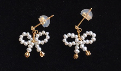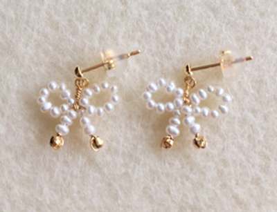 【K18 ベビー淡水パールリボンのピアス】(ペア1組) ご注文番号 532 12,000円 (+消費税) ※画像にマウスをあてますと、大きなサイズで商品をご覧いただけます。 ◎[K18イヤリングパーツへ変更可能アイテムです]・イヤリングパーツ(K18イエローゴールド)への変更は、プラス¥6000(+消費税)で承ります。 ご注文フォーム備考欄に「イヤリングパーツへ変更希望」とご記入くださいませ。 ・K18イエローゴールド ピンポストタイプピアス(K18キャッチシリコンカバー付き) ・ベビー淡水パール 44玉(約1、2㎜×1㎜) ・K18イエローゴールド ミラーボールビーズ 4粒(1、5㎜) ・K18イエローゴールド 金線 ○カン使用 ・チャームの長さ 約1㎝ ☆極小粒のベビー淡水パールを使い リボン形にチャームを作りました。 リボンの先には K18のミラーボールビーズをあしらい シンプルで清楚な[大人かわいい]リボンです。 すでに多くの方にご好評いただいております。 繊細な淡水パールのホワイトカラーと K18ミラーボールのゴールドカラーが 気品を高めてくれるリボンピアスです。 [淡水パール] ・優しき愛情、災難避け、邪気を祓う、創造力up、幸福を呼ぶ 等の意味を持っています。 引き寄せる運は ・精恋運…一途に相手を思いやる気持ちを持つ。想いの強さで運命を引き寄せる運。 ・夫婦運…夫婦が尊敬し合い結びつきを強く持てる運。子宝を得ることができる運。 |