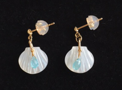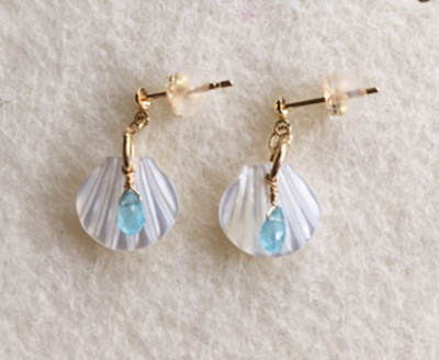 【K18 ホワイトシェルとブルーアパタイトのピアス】(ペア1組) ご注文番号 533 11,000円 (+消費税) ※画像にマウスをあてますと、大きなサイズで商品をご覧いただけます。 ◎[K18イヤリングパーツへ変更可能アイテムです]・イヤリングパーツ(K18イエローゴールド)への変更は、プラス¥6000(+消費税)で承ります。 ご注文フォーム備考欄に「イヤリングパーツへ変更希望」とご記入くださいませ。 ・K18イエローゴールド ピンポストタイプピアス(K18キャッチシリコンカバー付き) ・ホワイトシェル 2枚(約1㎝×1㎝) ・ブルーアパタイトブリオレット 2石(4㎜×3㎜) ・K18イエローゴールド 金線マルカン使用 ・K10イエローゴールド ヨリ線マルカン 2個(直径3㎜)使用 (ピアスとチャームの接続部分のヨリ線マルカン) ・チャームの長さ 約1、3㎝ ☆ホワイトシェルとブルーアパタイトのピアスです。 シェルの上に ちょこんとブルーアパタイトの雫が1粒乗ったデザインです。 本当は、シェルの上にパールを乗せたかったのですが 色調が近いのでパールがあまり目立たなくなってしまうので断念しました。 ホワイトシェルに合わせるなら やはりブルーが美しく映えると思い、いろいろあるブルーの石の中から 一番しっくりしたカラーの 青色が美しいブルーアパタイトを選びました。 ホワイトシェルは、ナチュラルな貝を手彫りでシェルの形に彫ってあります。 アパタイトは 混入物の多い石ですが 綺麗な部分を丁寧にブリオレットカットにしたルースを使っています。 シェルのトップには ボリュームのあるK18マルカンを通し ホワイトとブルーとゴールドの色の組み合わせも美しく引き立つようにしました。 素敵にご活用くださいませね。 |