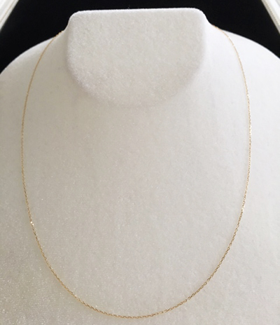 【K18 ネックレスチェーン】40㎝(37㎝でも使用可能) ご注文番号 538 9,000円 (+消費税) ※画像にマウスをあてますと、大きなサイズで商品をご覧いただけます。 ☆K18イエローゴールド素材のネックレスです。 華奢でシンプルなアズキチェーンで このままでお使いいただいても、チャームパーツを付けていただいても可愛らしくご活用いただけます。 全長は40㎝、アジャストのマルカンが付いているので 37㎝の長さでもお使いいただけます。 下記でご紹介している【K18チャームパーツ】が通るネックレスチェーンです。 |