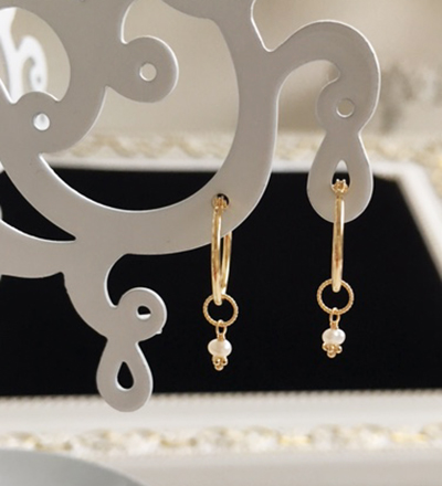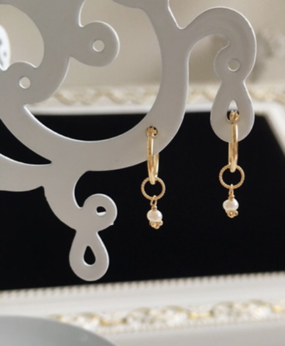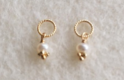 【K18 淡水パールのプチチャーム】(2個 1セット) ご注文番号 540 5,000円 (+消費税) ※画像にマウスをあてますと、大きなサイズで商品をご覧いただけます。 ☆かわいらしい粒の淡水パールと K18素材を使ったチャームです。 淡水パールは、小さな小さなタマゴを横にしたような一粒で その下にはK18の小玉が5粒お花のように配してあります。 淡水パールの大きさは 横が約3㎜ 縦が約2㎜です。 上の輪から下までの全長も約1㎝の大きさです。(上部のヨリ線状[ロープのようなテクスチャー]の輪の直径は4㎜です。) フープピアスに付けていただくと 華奢でとっても可愛らしいですよ。 パールホワイトとゴールドのカラーは 品があり王道のカラーの組み合わせですね! |