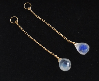 【K18 ホワイトラブラドライトのプチチャーム】(2個 1セット) ご注文番号 542 7,000円 (+消費税) ※画像にマウスをあてますと、大きなサイズで商品をご覧いただけます。 ☆ホワイトラブラドライトは、縦が約7㎜ 横が約6㎜の しずく形のブリオレットです。 淡い乳白色のベースに ブルーやグリーンのラブラドライトレッセンスが輝きます。 上部のヨリ線の[ロープのようなテクスチャー]の輪の直径は4㎜です。 輪の上からホワイトラブラドライトの下までの全長は約4㎝です。 フープピアスに付けていただくと 揺れ感を楽しめます。 また、長さがあるチャームなので 他の短いチャームと複数付けていただいてもお楽しみいただけると思います。 乳白色に幻想的な光の見える魅力的なチャームです。 |