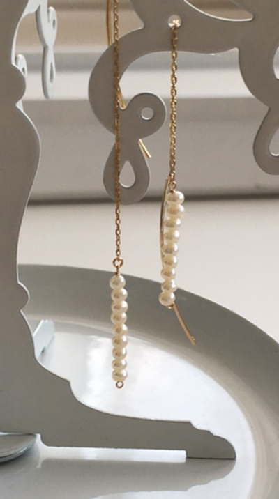 【K10 淡水パール アメリカンピアス】(ペア1組) ご注文番号 551 10,000円 (+消費税) ※画像にマウスをあてますと、大きなサイズで商品をご覧いただけます。 ・K10イエローゴールド アメリカンカーブピアス ・カーブしたピンの長さ 約3㎝ ・チェーンの長さ 約5㎝ ・K10イエローゴールド マルカン使用 ・チャーム部分の長さ(淡水パール) 約2㎝ ・全体の長さ 約10㎝ ☆可愛らしい粒の淡水ベビーパールをシンプルな連にしたチャームです。 ゴールドカラーとホワイトパールの輝きはとても素敵な組み合わせで、かわいく清楚な印象を与えてくれます。 さまざまな色のお洋服やファッションにも合わせやすいですね。 珠の小さなパールは、穴あけも選別も手作業なので とても高い技術力が必要になり コストがかかり高値で取引きされるのです。 優しさや広い愛の意味を持つパールを かわいく素敵に身につけてくださいませね。 |