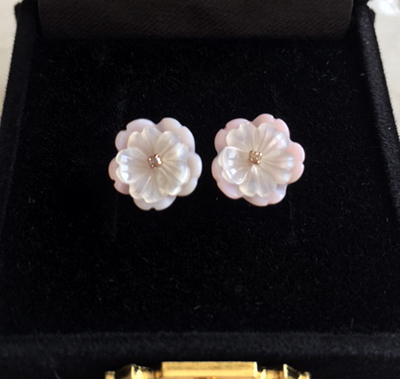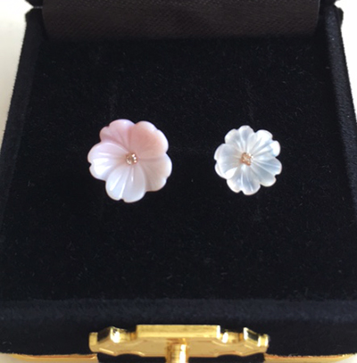 【K10 ピンクゴールド1粒ダイヤピアスとお花のセット】 ご注文番号 553 12,000円 (+消費税) ※画像にマウスをあてますと、大きなサイズで商品をご覧いただけます。 ●セット内容 ・K10ピンクゴールド天然ダイヤピアス [ペア1組](K10ピンクゴールドキャッチ シリコンカバーつき) ダイヤの大きさ 約1㎜(枠を入れると1、5㎜) ピンの長さ 約1㎝ ピン直径 約0、6㎜ ・ホワイトシェル 2個 直径約8㎜、 厚み 約1、5㎜ ・ピンクコンクシェル 2個 直径約10㎜、 厚み 約1、5㎜ ・ペリドットチャーム 2個 (6㎜×3、5㎜) 金線K10イエローゴールド ☆とても可愛らしいお花のセット商品をご用意しました。 セット内容は、K10ピンクゴールドに天然ダイヤが1粒輝く ピンポストピアス。 ダイヤは1㎜の小さなもので ダイヤを留めている枠を入れて約1、5㎜です。 このままでも とてもかわいいプチピアスです。 そして フラワーモチーフ(手彫り)のホワイトシェル(8㎜)、ピンクコンクシェル(10㎜)です。 このお花のモチーフの貝は、中央に穴が空いていて ダイヤのピアスを通すと ダイヤが中央のポイントとなり お花のピアスになります。 ホワイトシェルは 貝の美しく輝く部分を使い、ピンクコンクシェルは 淡いピンクがサクラのようなカラーです。 お碗のように中央に向かって湾曲した手彫りの貝のお花です。 ホワイトシェルだけをピアスを使っていただいてもよろしいですし、ピアスとピンクコンクシェルだけでお使いいただくこともできます。 ホワイトシェルとピンクコンクシェルは、少し大きさが違うので 2つを重ねると八重のお花にもなりますよ! さらに 今回セットで特別にお付けしたのが、葉っぱのイメージのペリドットのチャームです。 お花の後ろにくるようにセッティングしても良いし、ダイヤのピアスと このペリドットチャームを使っていただいてもクールなイメージのピアスとしてお使いいただけると思います。 ※ペリドットのチャームの金線は、K10イエローゴールドを使っています。 耳元にお花が咲いているイメージで かわいくお使いいただけるセットです。 色々な使い方で お好みの組み合わせを楽しんでくださいませね。 ※フラワーモチーフの ホワイトシェル ピンクコンクシェル、ペリドットチャームは【K10 イヤーフープ】にも通してお使いいただくこともできます。 ※ピアスに通してお使いいただくパーツが付属するセットです。独立したパーツなので各パーツを無くしてしまわないようにご注意くださいませ。 ※フラワーモチーフの貝は天然素材で手彫りの為、大きさ 花びらの形 色のでかた に多少の個大差が生じます。 どうかご理解くださいませ。 ◎シンプルなダイヤピアスにプラスしていただけるチャーム等を 今後増やしてご紹介できるよう努めたいと思います。 |