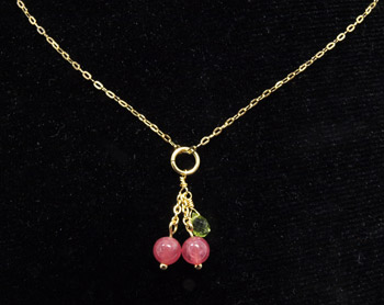 ご注文番号 222 チェリーペンダント インカローズ(ロードクロサイト)・ペリドット(ブリオレットカット) K18金具使用 約43cmまで対応 インカローズ(ロードクロサイト)とペリドットを使ったカワイイチェリーのモチーフです。インカローズ(ロードクロサイト)は、薔薇色の人生というタイトルというのを持っているのも有名ですよね。豊かな愛情を育み、社交性・感受性・五感UPというような生涯を通じて生きる喜びを感じられるパワフルな石です。情熱的な恋や永遠のパートナーにめぐり合い、恋愛に関しても良い方向へ導いてくれます。そしてパワフルなパワーを引き寄せると同時に、トラブルを解決し、心の傷を癒して愛情で包むヒーリング力をも発揮してくれるといった両面を持った石です。ペリドットは、知力と美的感を向上してくれます。この組み合わせは見た目がかわいらしいだけでなく、色々な角度から見てピッタリのパートナーを見つけたり、パートナーと尊敬し合い、結びつきを強くしたりします。そして邪悪なものを遠ざけ、いつまでも美しく、かわいくいられるように組み合わせてみました。 ※画像にマウスをあてますと、大きなサイズで商品をご覧いただけます。 |