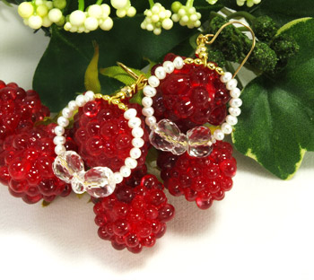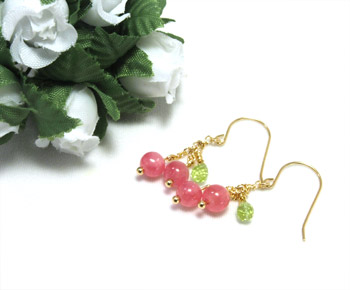 ご注文番号 223 チェリーピアス インカローズ(ロードクロサイト)・ペリドット(ブリオレットカット) K18金具使用