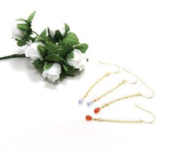 ご注文番号 251-A サファイアピアス 青 ご注文番号 251-B サファイアピアス 赤 K18金具使用 青:チェーンから石の下まで約3cm 赤:チェーンから石の下まで約3cm